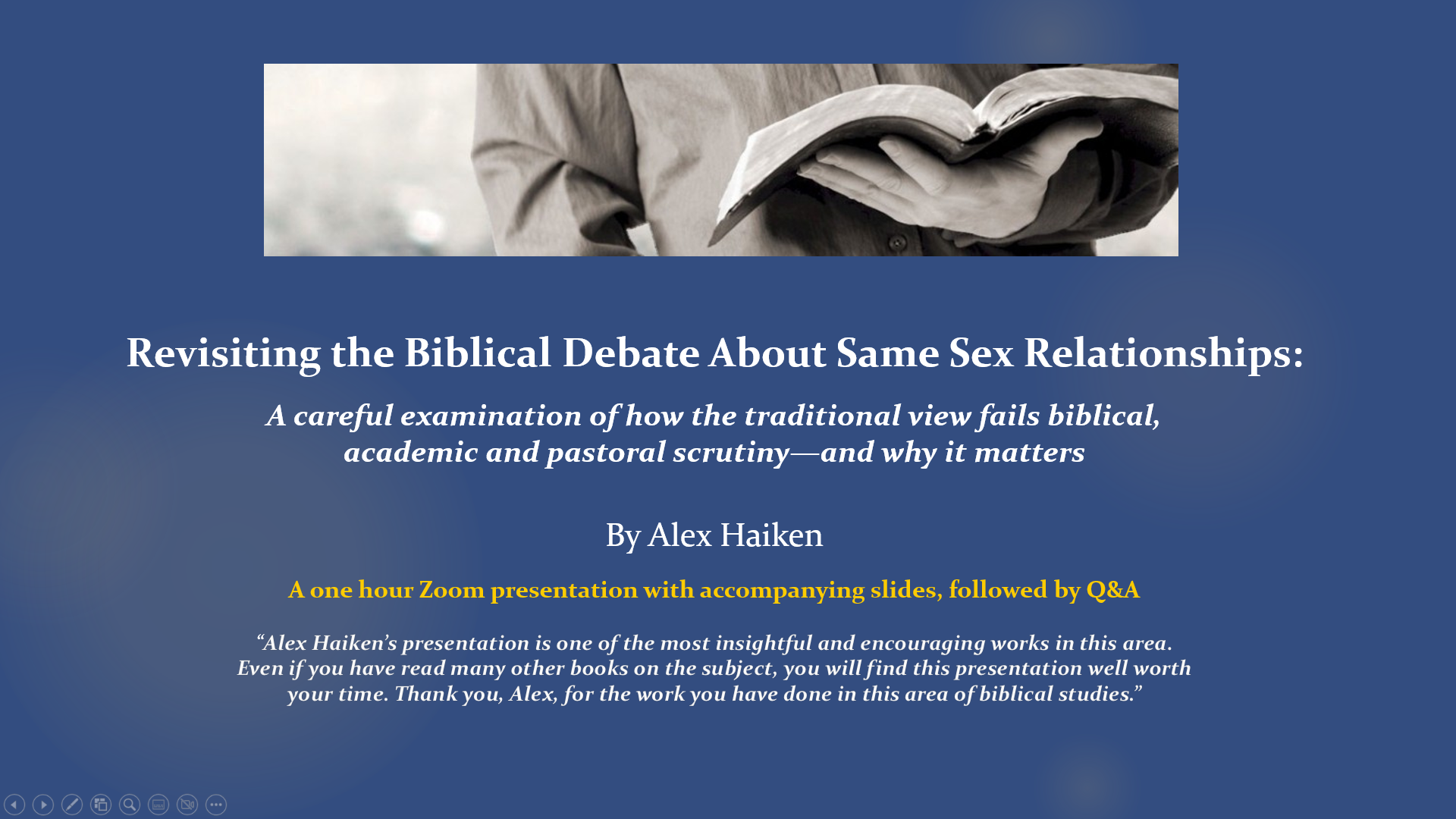 Grounded in Scripture and respected academic scholarship, this presentation moves beyond recycled debates and politicized rhetoric to focus on careful biblical exegesis—drawing out what the text meant in its original context, rather than reading into it assumptions shaped by later traditions.